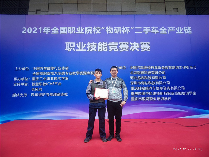 我院学子荣获2021年第二届全国职业院校“物研杯”二手车全产业链职业技能大赛一等奖