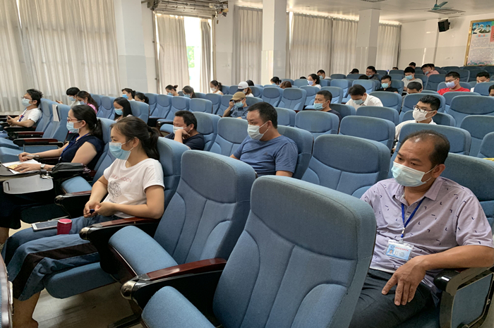 参会班主任按照间隔1米的要求有序落座