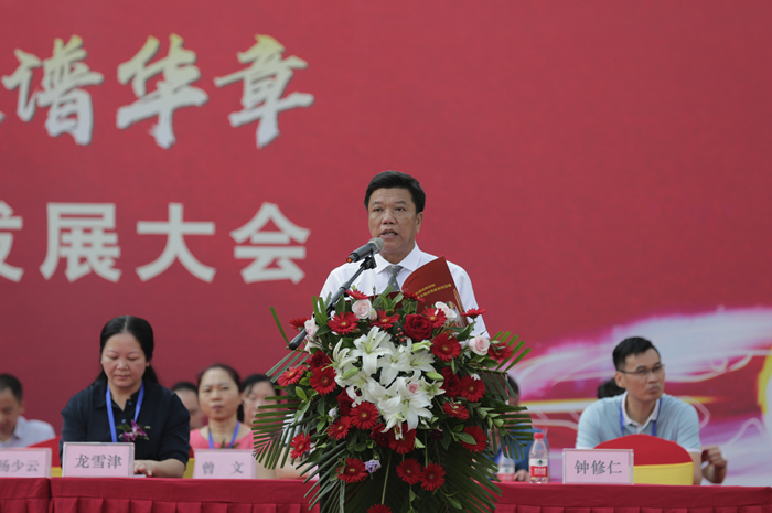 学院院长钟修仁致欢迎词并进行成果汇报。他首先代表学院领导班子、全体师生员工,向长期关注、关心、支持学院建设发展的各级领导、兄弟院校、广大校友和社会各界朋友表示衷心的感谢。他表示,学院在60年的发展过程中紧跟国家大力发展职业教育的步伐,求真务实,积极进取,基础设施建设日新月异,办学规模不断扩大。在建校60周年之际,广西交通技师学院在校生总人数突破万人大关。
