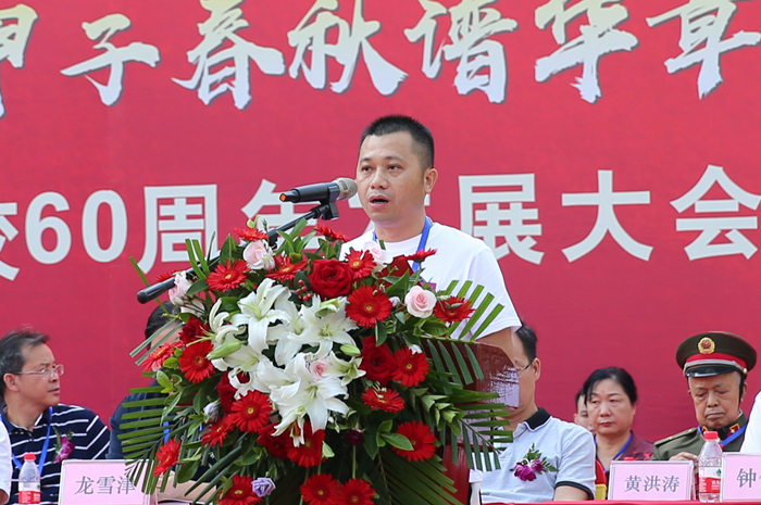 广西钦州市吉祥物流有限公司、广西钦州市万通汽车销售有限公司董事长,钦州市百色商会会长,钦州市道路运输协会监事长,我院96级毕业生、杰出校友李恩情代表我院广大校友发言。他代表全体校友向母校表示最衷心、最热烈的祝贺,向各位老师表示亲切的问候和崇高的敬意。他祝愿母校在60华诞之际,宏图更展,再谱华章,未来更加灿烂辉煌!