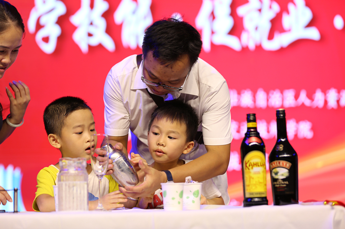 此次宣传活动包括“技能扶贫”签名活动、学生才艺表演、有奖知识问答等,内容丰富多样。现场开设了工业机器人、汽车维修、酒店服务、服装设计、茶艺等各类专业的技能展示以及汽车日常保养、电脑日常维护、南宁传统小吃制作、空调日常清洗、美容美发、动漫制作等现场观众体验项目,并有艺术花篮制作、鸡尾酒调制、机器人操控和陶瓷拉胚等免费技能培训大课堂,市民们纷纷驻足观看并且参与体验,现场人头攒动、热闹非凡。