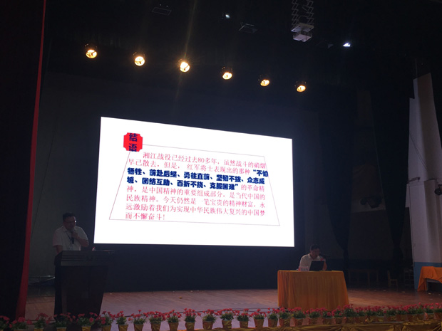 赵晓刚博士通过湘江战役讲述了红军长征的背景、经过及意义,带领我院全体党员职工重温历史,铭记历史,弘扬和传承红军精神和共产党人的历史担当,重述中国共产党人为中国人民谋幸福、为中华民族谋复兴的初心和使命。